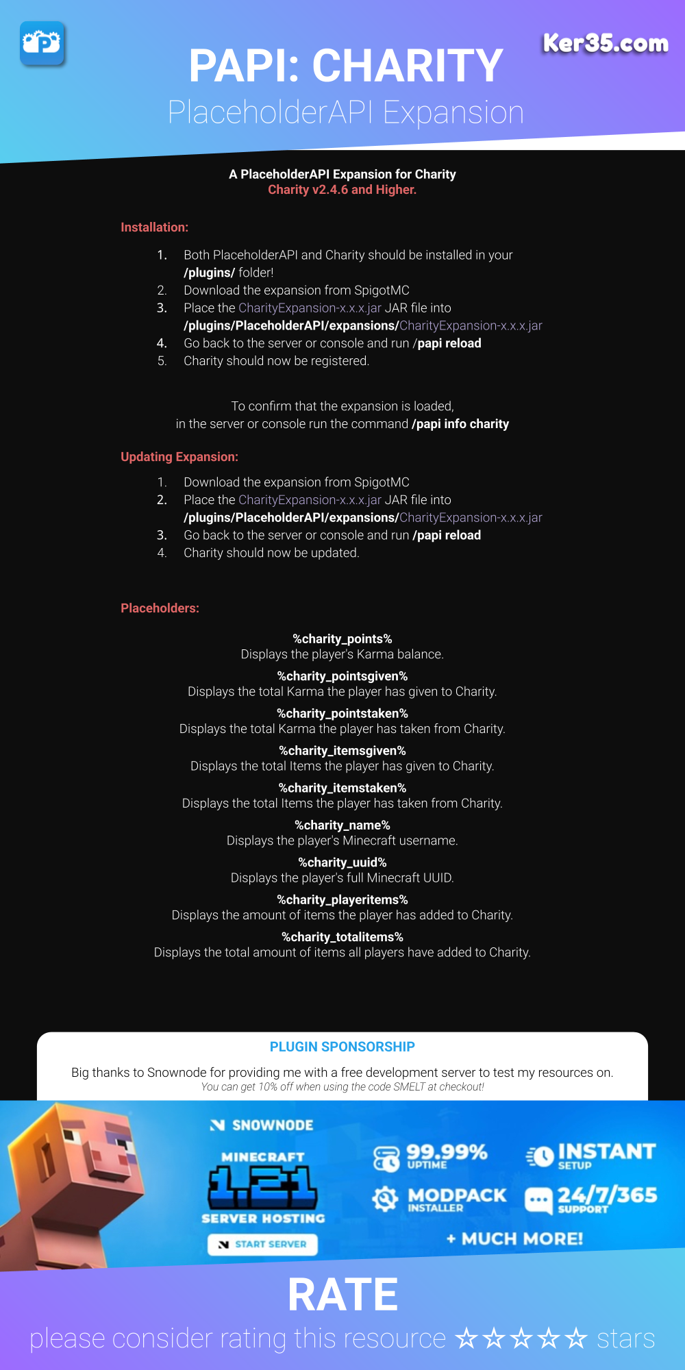 [1.0.2] PlaceholderAPI Expansion for Charity